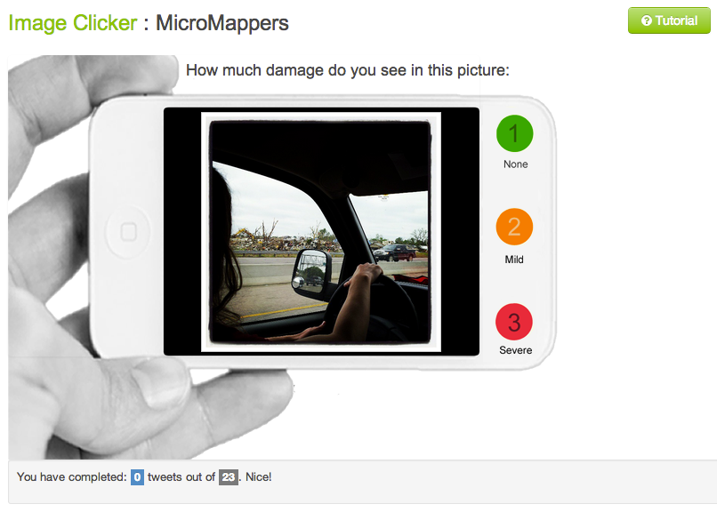 My team and I at QCRI are about to launch MicroMappers: the first ever set of microtasking apps specifically customized for digital humanitarian response. If you’re new to microtasking in the context of disaster response, then I recommend reading this, this and this. The purpose of our web-based microtasking apps (we call them Clickers) is to quickly make sense of all the user-generated, multi-media content posted on social media during disasters. How? By using microtasking and making it as easy as a single click of the mouse to become a digital humanitarian volunteer. This is how volunteers with Zooniverse were able to click-and-thus-tag well over 2,000,000 images in under 48-hours.
