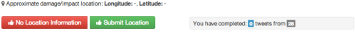 We have already developed and customized four Clickers using the free and open source microtasking platform CrowdCrafting: TweetClicker, TweetGeoClicker, ImageClicker and ImageGeoClicker. Each Clicker includes a mini-tutorial to guide volunteers. While we’re planning to launch them live next month, these Clickers (described below) can be used right now if need be. When a disaster strikes, we can automatically upload tweets to the TweetClicker, for example. These tweets are pre-filtered for keywords and hashtags relevant to the disaster in question. We can also automatically identify multimedia content posted to Twitter and upload this to the ImageClicker to tag pictures that show damage, for example.