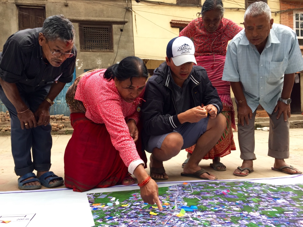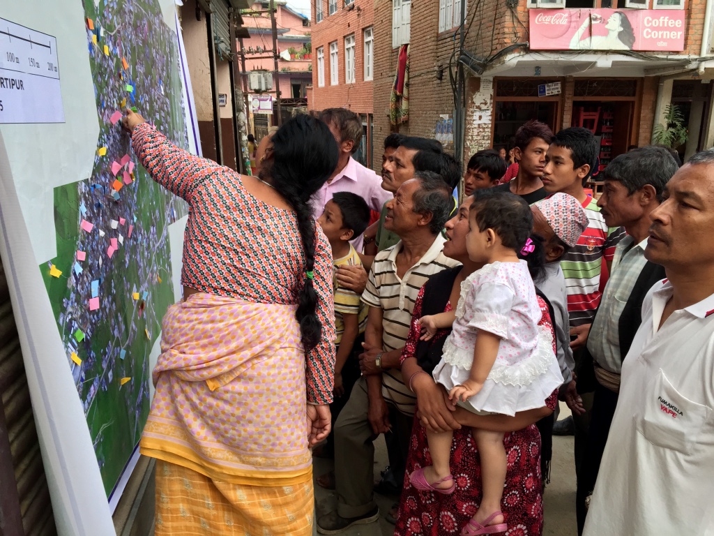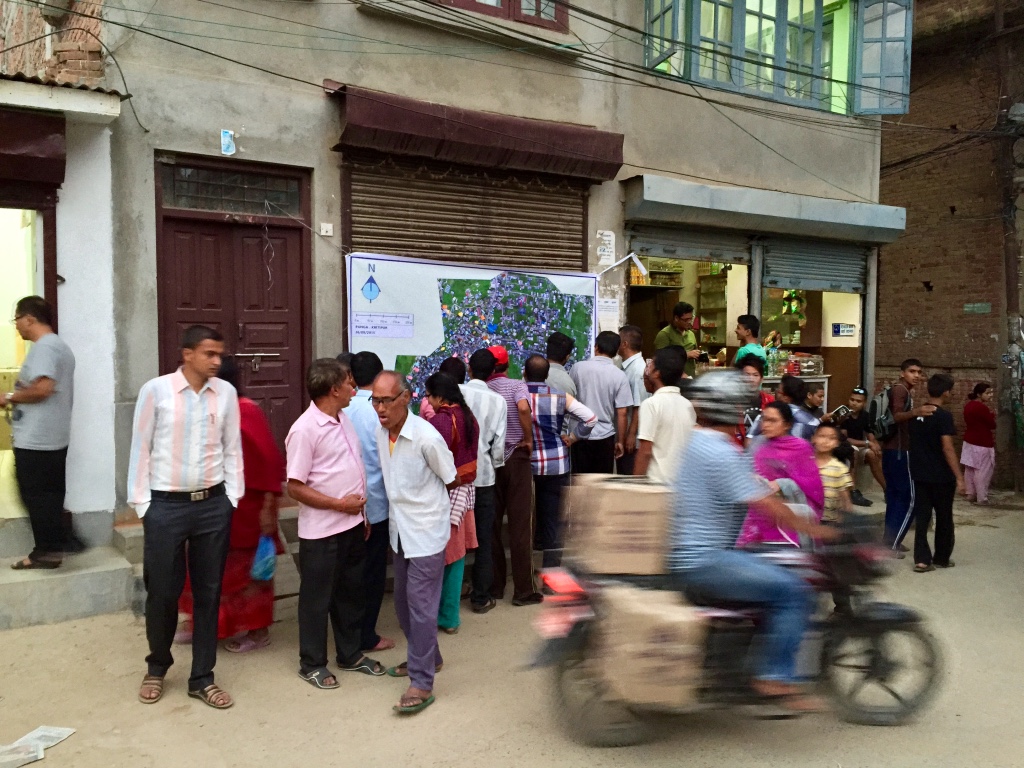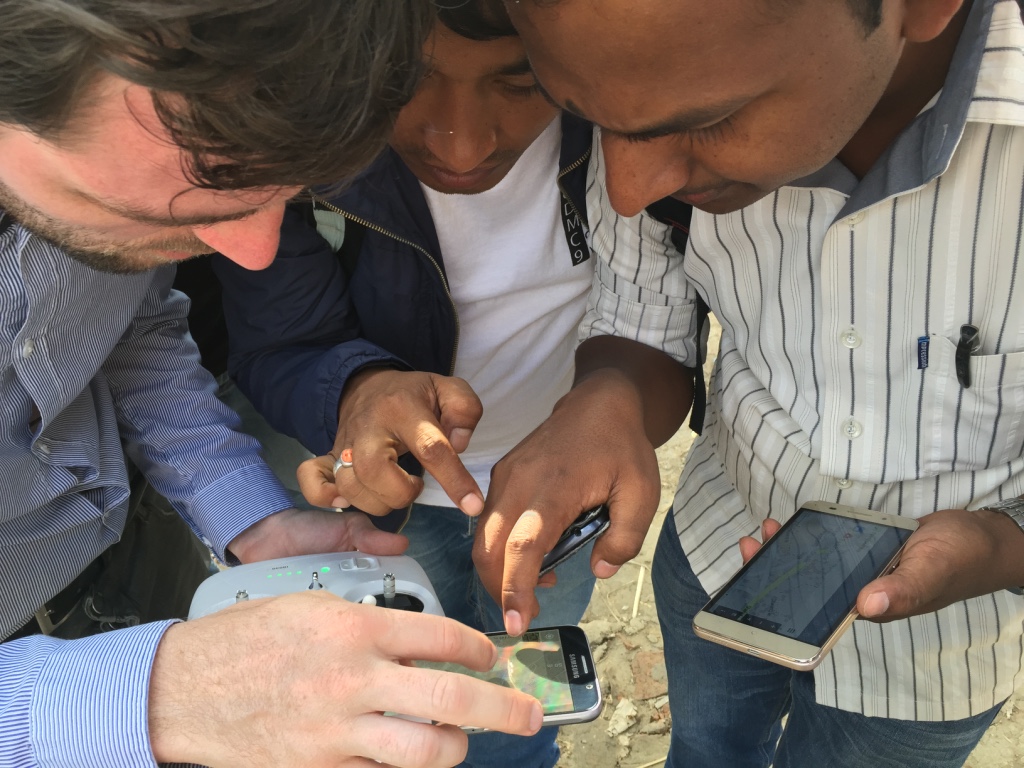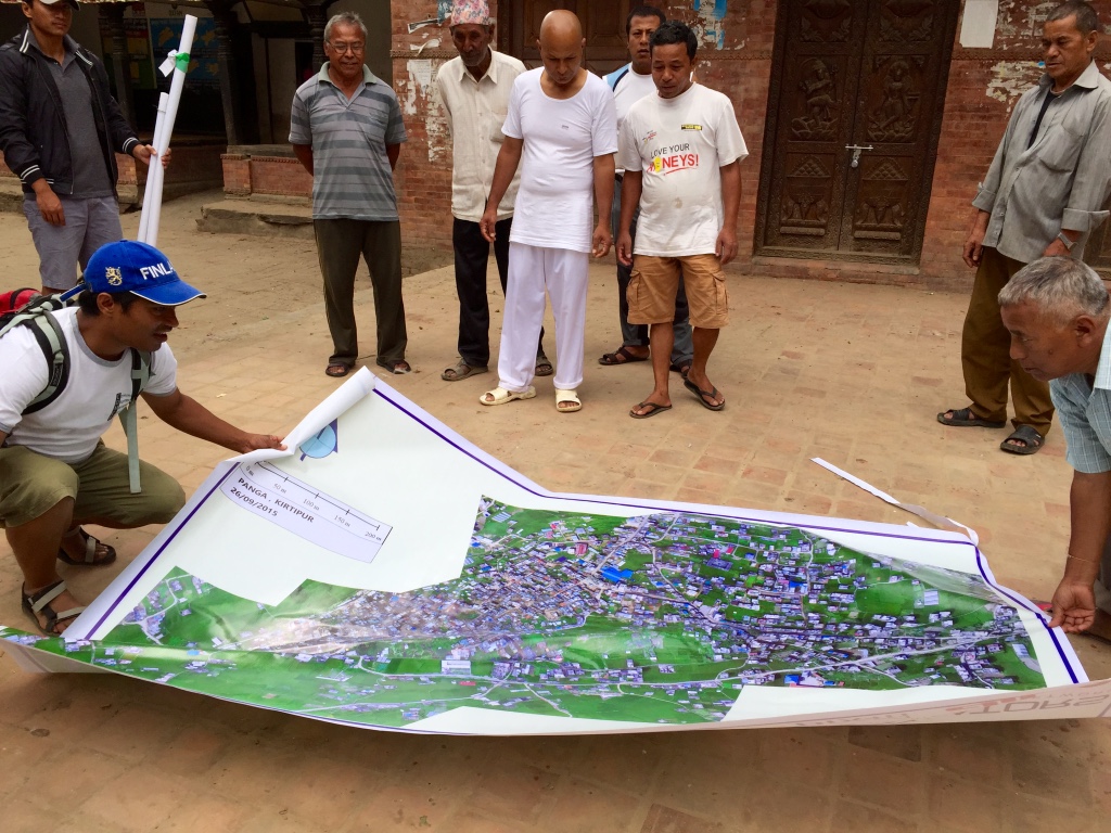The second-half of the day was dedicated to operations. We had already received written permission from the CAA to carry out all UAV flights thanks to KU’s outstanding leadership. KU also selected the deployment sites and enabled us to team up with the very pro-active Community Disaster Management Committee (CDMC-9) of Kirtipur to survey the town of Panga, which had been severely affected by the earthquake just months earlier. The CDMC was particularly keen to gain access to very high-resolution aerial imagery of the area to build back faster and better, so we spent half-a-day flying half-a-dozen Phantom 3’s over parts of Panga as requested by our local partners.