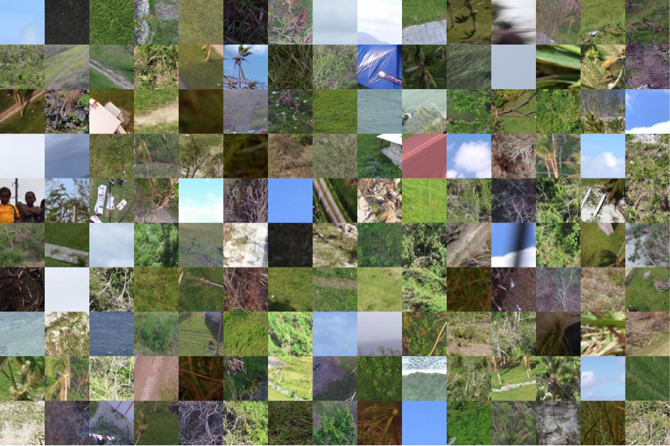 The heterogeneity of our dataset of images makes the automated analysis of this imagery a lot more difficult. Furthermore, buildings that are under construction, of which there are many in our dataset, represent a major difficulty because they look very similar to damaged buildings. Our first task thus focused on training our algorithms to determine whether or not any given aerial image shows some kind of building. This is an important task given that more than ~30% of the images in our dataset do not contain buildings. As such, if we can develop an accurate algorithm to automatically filter out these irrelevant images (like the “noise” below), this will allows us focus the crowdsourced analysis of relevant images only.