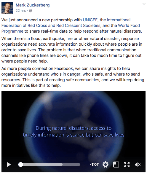 In early 2016, I began consulting with Facebook on their disaster mapping initiative. One of our first orders of business was to reach out to subject matter experts around the world. It is all too easy for companies in Silicon Valley to speculate about solutions that could be useful to humanitarian organizations. The problem with that approach is that said companies almost never consult seasoned humanitarian professionals in the process. Facebook took a different approach. They spent well over half-a-year meeting with and listening to humanitarian professionals across a number of different aid organizations. Then, they co-developed the solution together with experts from UNCIEF, IFRC, ARC, WFP and myself. This process insured that they built solutions that are actually needed by the intended end users. Other Silicon Valley companies really ought to take the same approach when seeking to support social good efforts in a meaningful manner.