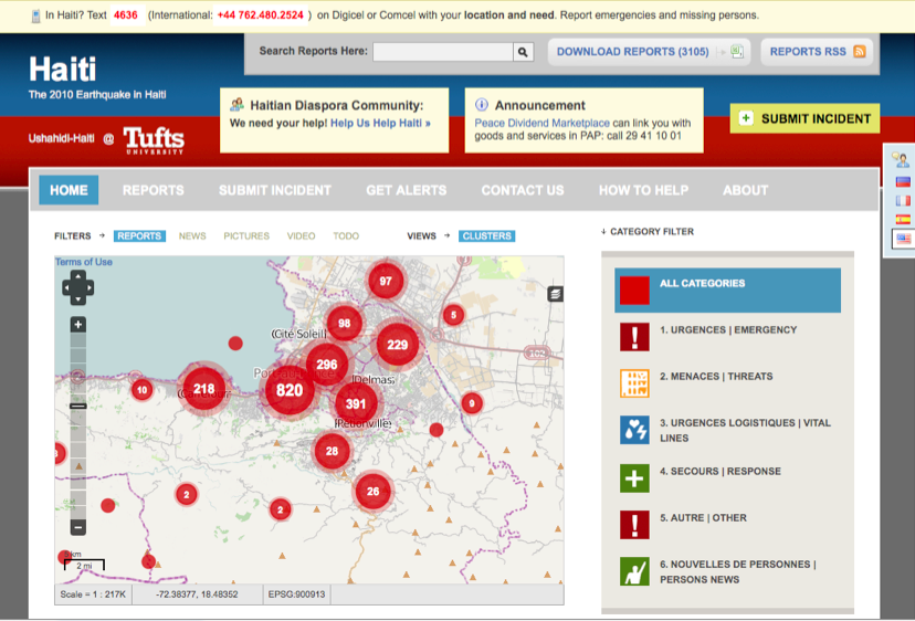 To connect this effort with the work that my CrisisComputing Team and I are doing at QCRI, our contact at Digicel during the Haiti response had given us the option of sending out a mass SMS broadcast to their 2 million subscribers to get the word out about 4636. (We had thus far used local community radio stations). But given that we were processing incoming SMS’s manually, there was no way we’d be able to handle the increased volume and velocity of incoming text messages following the SMS blast. So my team and I are exploring the use of advanced computing solutions to automatically parse and triage large volumes of text messages posted during disasters. The project, which currently uses Twitter, is described here in more detail.