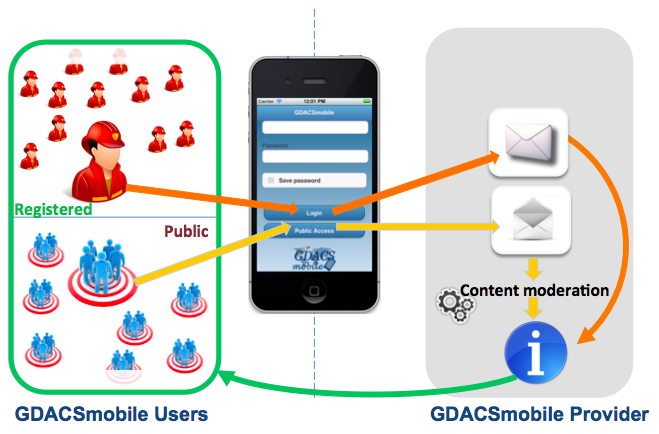 GDACSmobile is intended for use by disaster responders and the general public, allowing for a combined crowdsourcing and “bounded crowdsourcing” approach to data collection and curation. This bounded approach was a deliberate design feature for GDACSmobile from the outset. I coined the term “bounded crowd-sourcing” four years ago (see this blog post from 2009). The “bounded crowd-sourcing” approach uses “snowball sampling” to grow a crowd of trusted reporters for the collection of crisis information. For example, one invites 5 (or more) trusted local reports to collect relevant information and subsequently ask each of these to invite 5 additional reporters who they fully trust; And so on, and so forth. I’m thrilled to see this term applied in practical applications such GDACSmobile. For more on this approach, please see these blog posts.