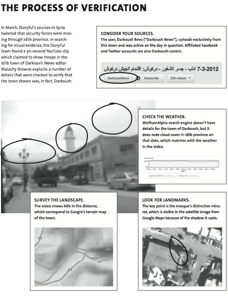 This may explain why David expects the field of “information forensics” to becoming industrialized. “By that, he means that some procedures are likely to be carried out simultaneously at the click of an icon. He also expects that technological improvements will make the automated checking of photos more effective. Useful online tools for this are Google’s advanced picture search or TinEye, which look for images similar to the photo copied into the search function.” In addition, the BBC’s UGC Hub uses Google Earth to “confirm that the features of the alleged location match the photo.” But these new technologies should not and won’t be limited to verifying content in only one media but rather across media. Multi-media verification is the way to go.