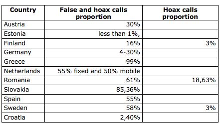 I also came across the table below in this official report (PDF) published in 2011 by the European Emergency Number Association (EENA). The Greeks top the chart with a staggering 99% of all emergency calls turning out to be false/hoaxes, while Estonians appear to be holier than the Pope with less than 1% of such calls.
