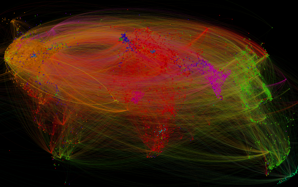 If this isn’t impressive enough, Kalev and colleagues have just launched the GDELT Global Knowledge Graph (GKG). “To sum up the GKG in a single sentence, it connects every person, organization, location, count, theme, news source, and event across the planet into a single massive network that captures what’s happening around the world, what its context is and who’s involved, and how the world is feeling about it, every single day.” The figure above (click to enlarge) is based on a subset of a single day of the GDELT Knowledge Graph, showing “how the cities of the world are connected to each other in a single day’s worth of news. A customized version of the GKG could perhaps prove useful for UN OCHA’s “Who Does What, Where” (3Ws) directory in the future.