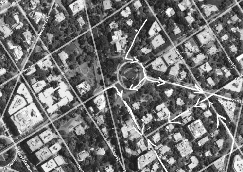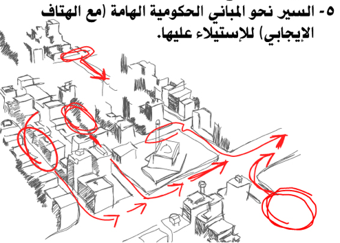 The guide also stressed the need to remain peaceful and not engage in sabotage. The discipline of remaining non-violent is instrumental in civil resistance. Engaging in violence provides government forces with the excuse they’re looking for to clamp down on protesters and delegitimize them in a public way. The guide also recommends that activists try to win over the police and army instead of attacking them. The protesters behind this guide were clearly well trained and knew what they were doing. They even provided several Google Earth screen shots of different parts of the city to recommend tactical moves: