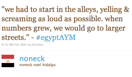 Activists thus took deliberate and informed actions and used technology to synchronize those actions. How did the popular movement become this sophisticated? Young Egyptians had lots of practice. From the Kefeya movement of 2004, the elections of 2005 (and 2010), the April 6 movement of 2008 and the Khaled Said campaign of 2010. They learned from each confrontation and adapted their tactics and strategies accordingly. They reached out to others such as Otpor in Serbia for training and guidance. The Serbs met with Egyptian groups and “shared their own hard-won experience, as well as fundamental lessons of popular nonviolent resistance,” according to this article in The Atlantic. And they took inspiration from the writings of Gene Sharp.