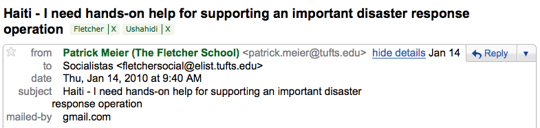 In any case, this initiative is still very much experimental and there’s lots to learn. The SBTF Tech Team headed by Nigel McNie is looking to make the above integration happen, which I’m super excited about. I’d love to see closer integration with satellite imagery analysis data in future Ushahidi deployments that crowdsource crisis reporting from the field. Incidentally, we could scale this feature tagging approach to include hundreds if not thousands of volunteers.