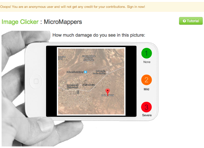 Shortly after this request, the UN Office for the Coordination of Humanitarian Affairs (OCHA) in Pakistan officially activated the Digital Humanitarian Network (DHN) to rapidly assess the damage and needs resulting from the earthquake. The award-winning Standby Volunteer Task Force (SBTF), a founding member of the DHN. teamed up with QCRI to use MicroMappers in response to the request by OCHA-Pakistan. This exercise, however, is purely for testing purposes only. We made this clear to our UN partners since the results may be far from optimal.