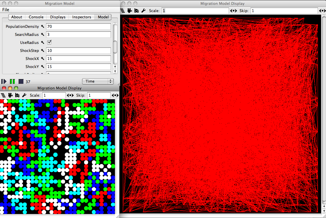 Perhaps most impressive but challenging is the team’s interest in combining spatial analysis with social networking analysis (SNA). For example, visualizing data or projects based on their geographic relationships but also on their functional relationships. I worked on a similar project at the Santa Fe Institute (SFI) back in 2006, when colleagues and I developed an Agent Based Model  (ABM) to simulate internal displacement of ethnic groups following a crisis.